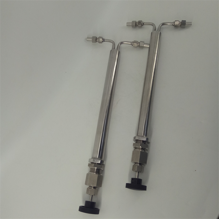 雙針式減壓閥采用超長調(diào)節(jié)通道和超長調(diào)節(jié)閥桿的設(shè)計,很大范圍的進行流量、壓力的調(diào)整。棒針式減壓閥JYF-32C流量調(diào)節(jié)從每公鐘150毫升至4公升、壓力下降至5000Psig的345巴爾格。該減壓閥的減壓的主要原理是當高壓樣水通過時,利用細長棒針與管內(nèi)孔之間的間隙,達到減壓的目的。當減壓閥的入口處壓力一定時,只須改變棒針的插入深度,即可調(diào)整減壓閥出口壓力,控制樣品流量。