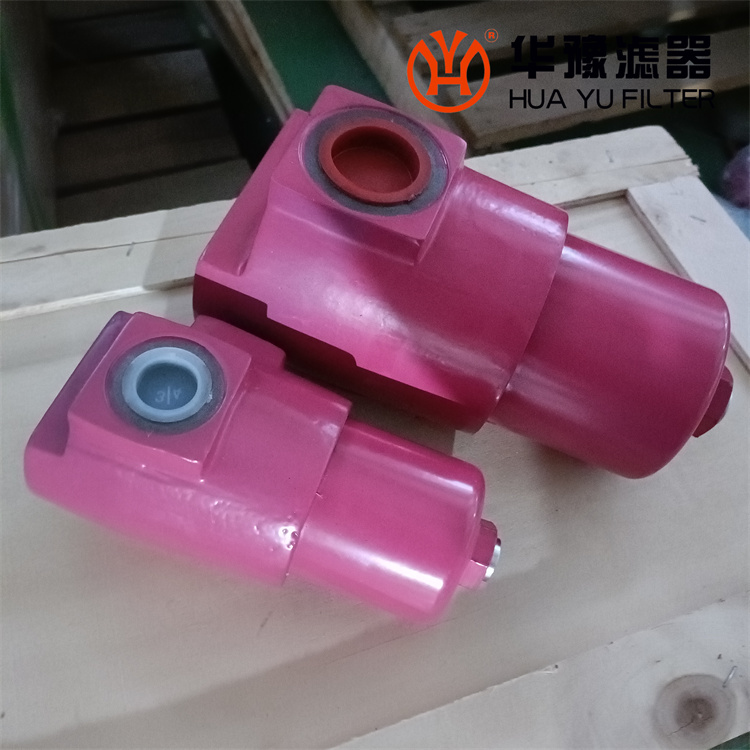 該過濾器的濾芯采用化纖過濾材質,具有過濾精度高,通油能力大,初始壓力損失小,納污量大等優點,并裝有壓差發訊器及旁通閥。當濾芯堵塞到進出油口壓差為0.35MPa時,便發出開關信號,此時應更換濾芯。如果不能馬上停機或無人來更換濾芯,裝在濾芯上部的旁通閥會自動開啟,以保護系統。