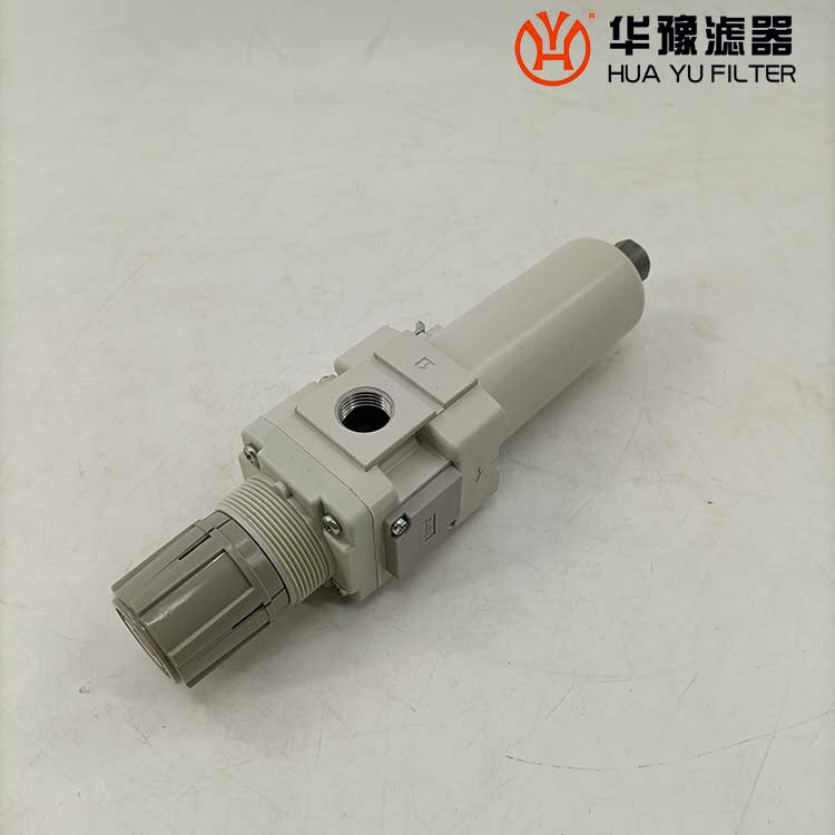 從進(jìn)口流入的壓縮空氣,經(jīng)導(dǎo)流片的切線方向的缺口強(qiáng)烈旋轉(zhuǎn),液態(tài)油水及固態(tài)污染物受離心作用,被甩到水杯內(nèi)壁上,再流至底部。除去了液態(tài)油水及雜質(zhì)的壓縮空氣,通過濾芯進(jìn)一步清除微小固態(tài)顆粒,然后從出口流出。 空氣中的溶膠狀的威力是能通過5um的濾芯的,擋水板能防止下部的液態(tài)油水被卷口氣流中,聚積在水杯內(nèi)的冷凝水,按動(dòng)手動(dòng)按針,便可以從排水口指出。濾芯有金屬網(wǎng)型、燒結(jié)型和纖維凝聚型。燒結(jié)型有銅珠燒結(jié)、樹脂燒結(jié)和陶瓷燒結(jié)等。銅珠燒結(jié)濾芯的表面和內(nèi)部都起到過濾作用,強(qiáng)度好,***,可清洗幾次重復(fù)使用。纖維凈聚型有樹脂類,人造纖維類材料等。金屬網(wǎng)型知識(shí)表面起到過濾作用。
